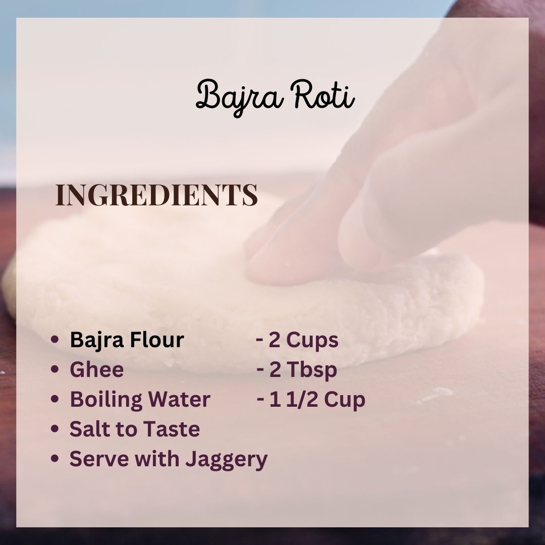 Spread ghee (clarified butter) on the bajra roti and serve it hot with Jaggery